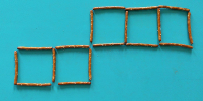 - Make 1 large and 4 small squares by removing (or eating!) exactly 4 pretzels.