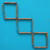 - Make 3 congruent squares by moving exactly 4 pretzels.
