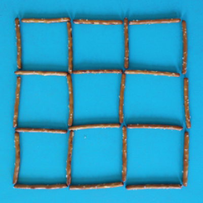 - Make 2 squares of different sizes by removing exactly 2 pretzels.